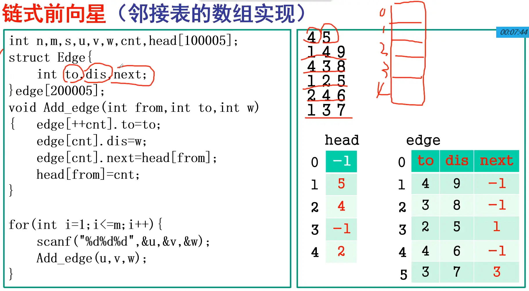 若用普通二维数组存邻接表,则需要1e8的空间开销,而图中实际边数只有20000,则无疑会造成极大浪费(易超内存)。