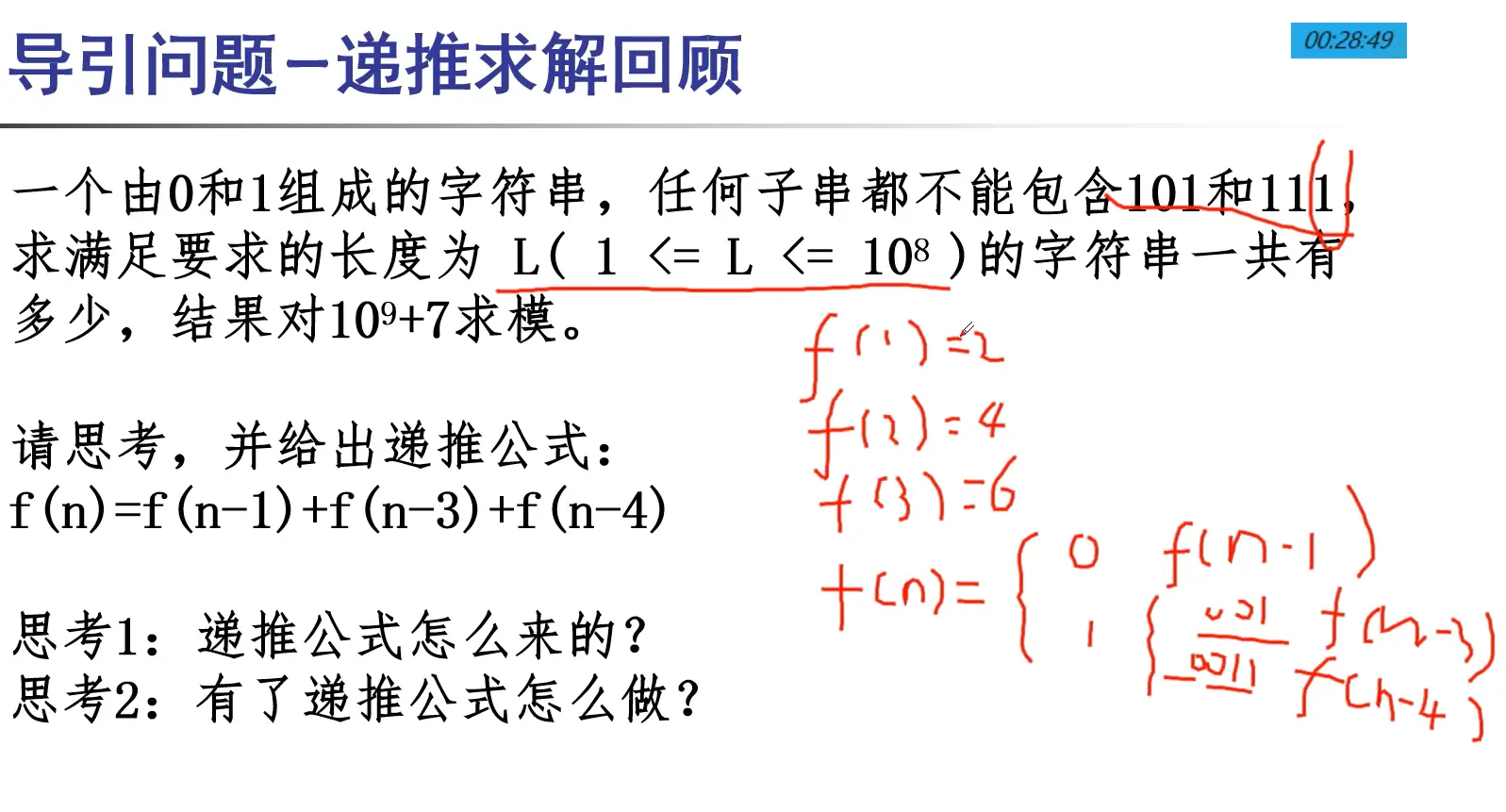 - 本讲主要介绍了哪几类递推表达式?