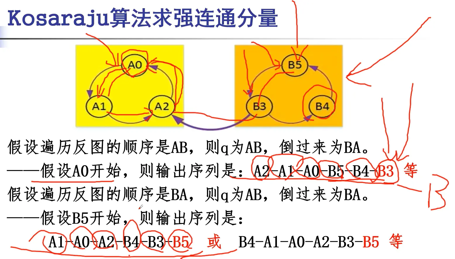 - 按照q[n]..q[1]的顺序去DFS反图,依次得到每个强连通分量。